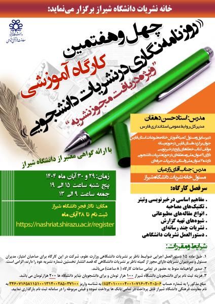 ✳️چهل و هفتمین کارگاه آموزشی روزنامه نگاری در نشریات دانشجویی (الزامی جهت دریافت مجوز نشریه)